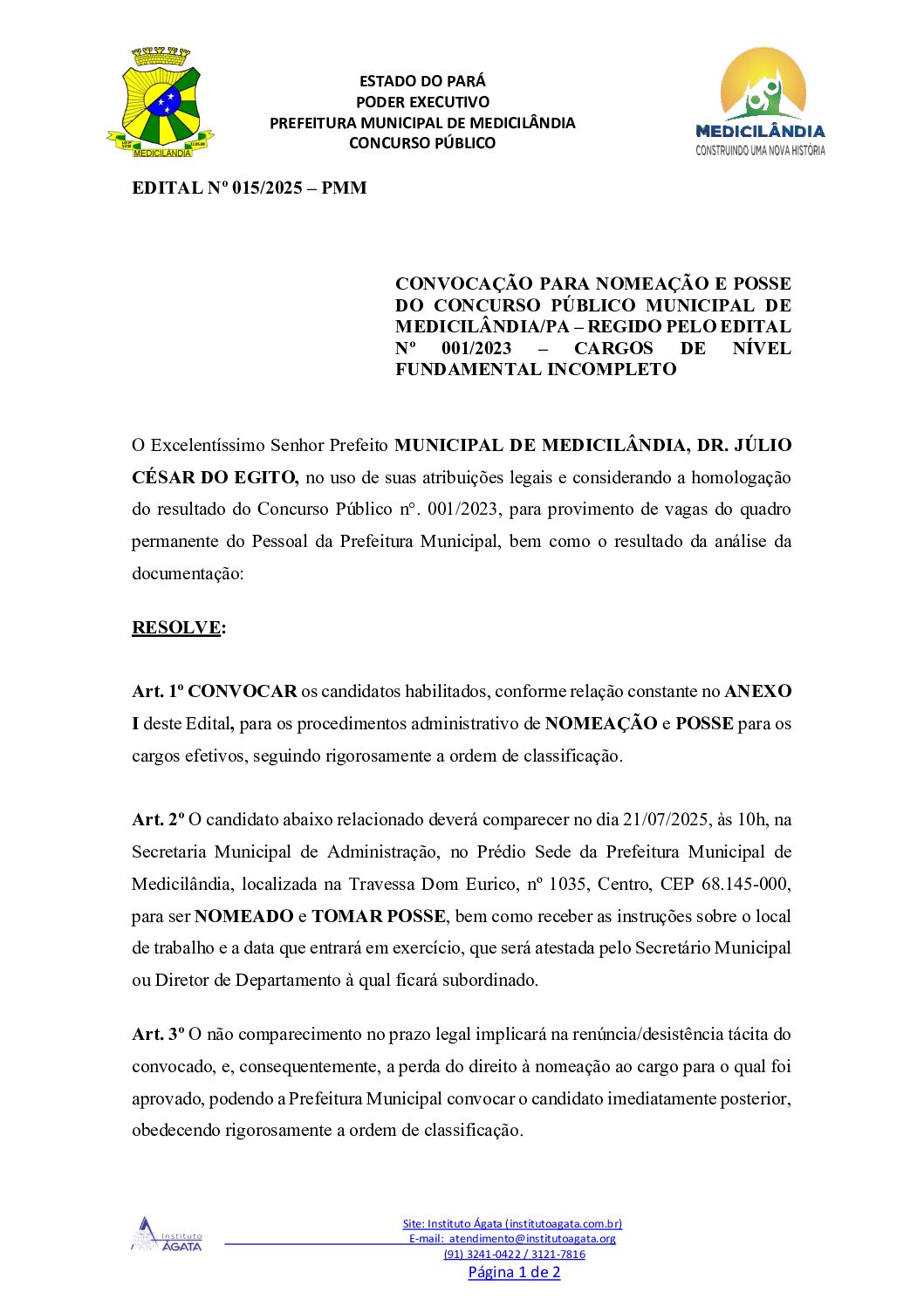EDITAL 015- CONVOCAÇÃO