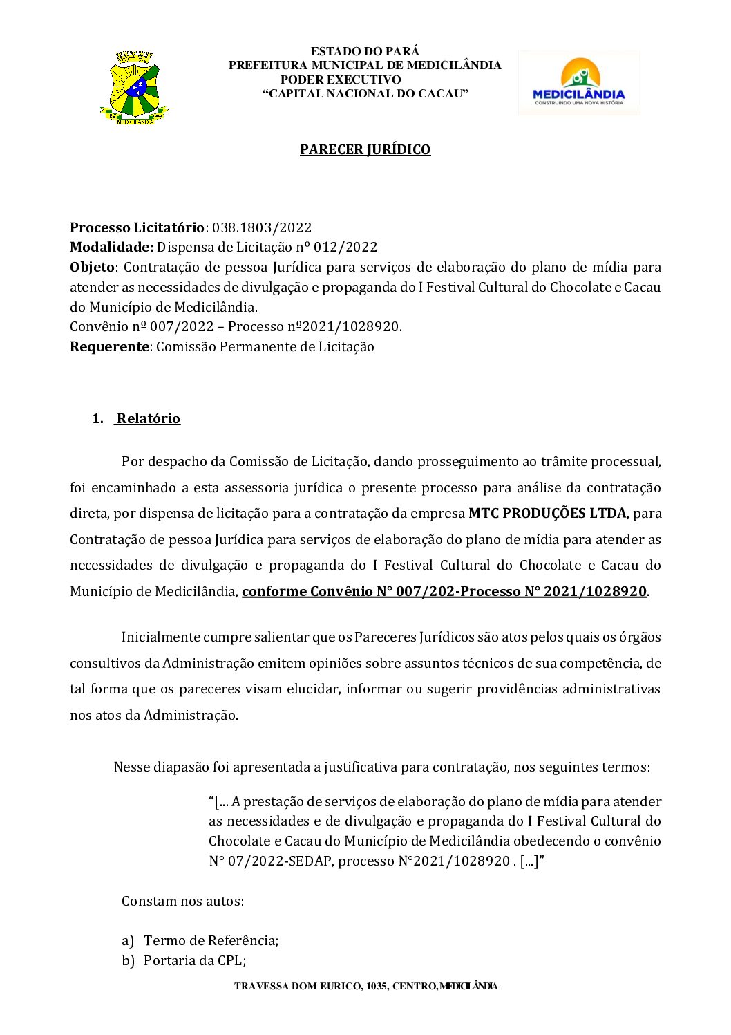 PARECER JURÍDICO DISPENSA 012 – MTC PRODUÇÕES LTDA – assinado